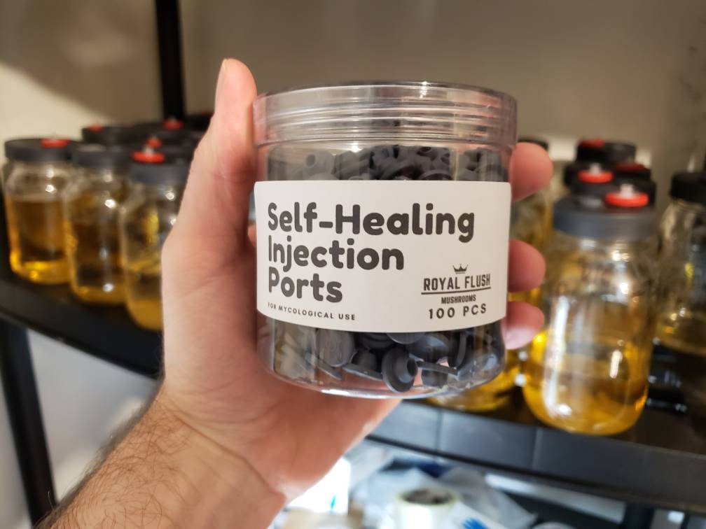 100 autoclavable (pressure-cookable) self healing inoculation ports for mycology. Commonly use for liquid culture and spawn jars.