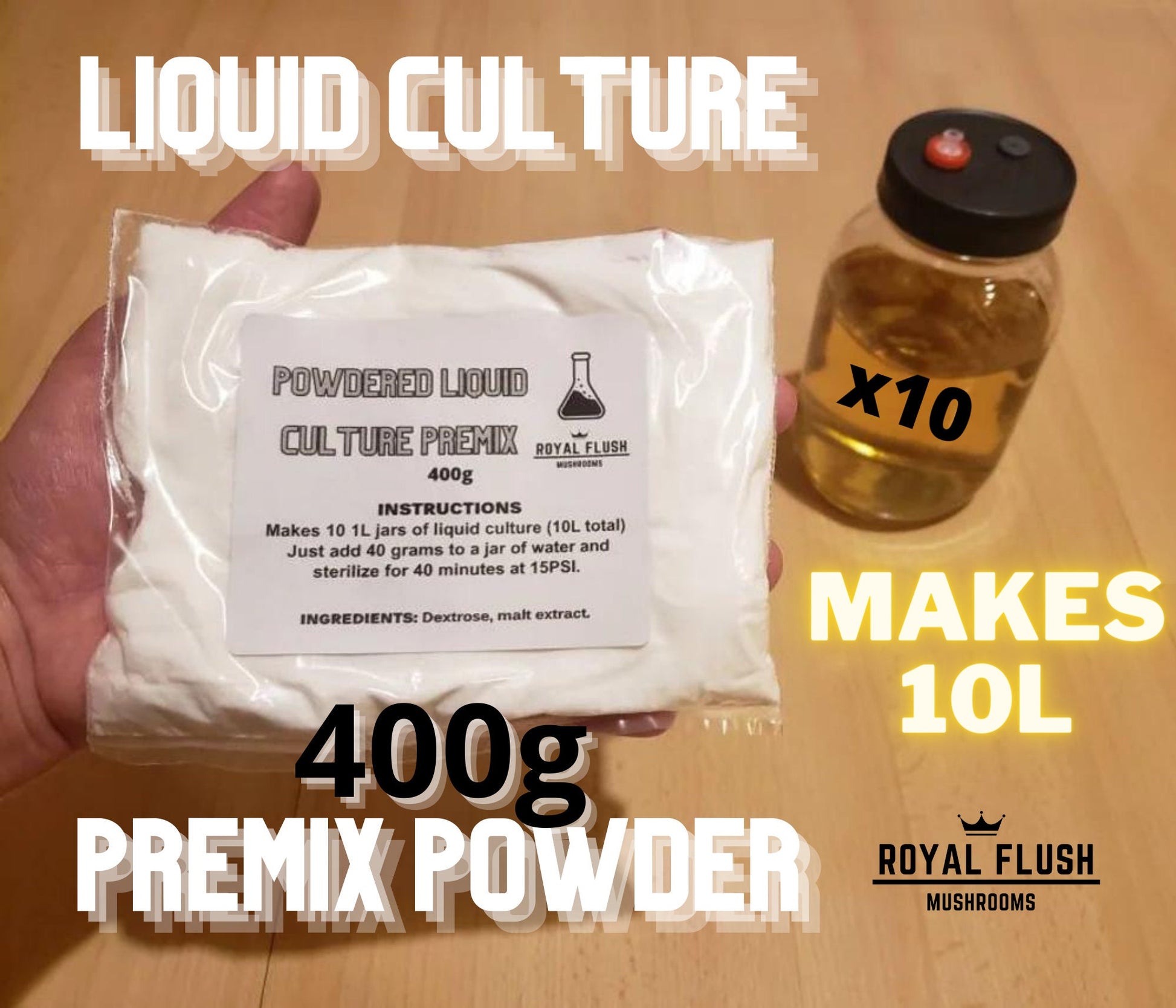 Powdered Liquid Culture PreMix (Makes 10L) - Just Add Water