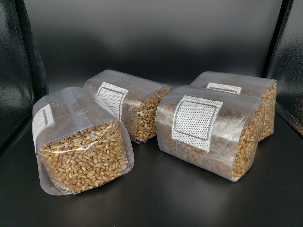 4 x 1 LB Rye Grain Spawn Bags with Injection Ports. Sterile, hydrated and ready to use. Just add clean spores or culture.